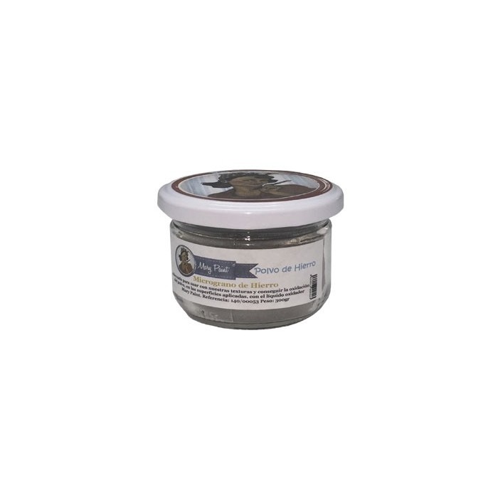 Polvo de hierro 300gr envase 140ml.Grano finísimo, ideal para oxidar muebles y objetos decorativos. Se utiliza junto con el líquido oxidador.