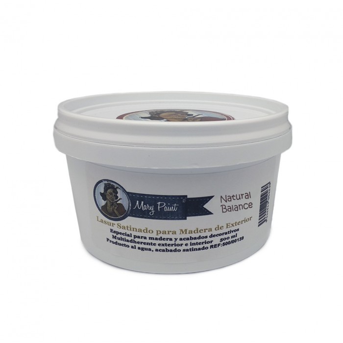Lasur protector al agua satinado. Adecuado para proteger y decorar madera en exterior, dotándola de una excelente durabilidad en condiciones adversas. Acabado satinado. 500 ml.