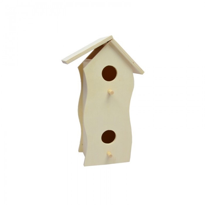 Pajarera de dos alturas en madera, con solapa superior. Ideal para pintar, decorar y manualidades. 16x12x30cm