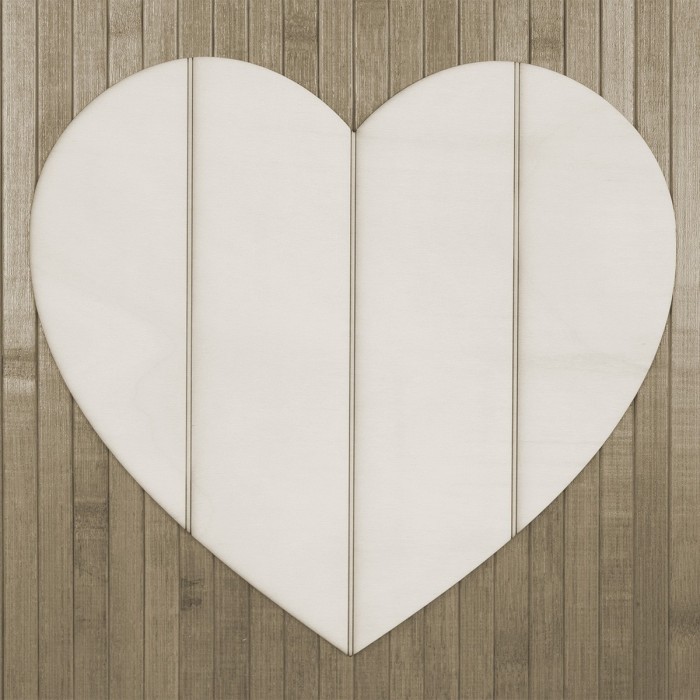 Silueta corazón listones, en madera de 30 x 30 cm color natural, corte al láser, para decorar con pintura o nuestros papeles de decoupage.