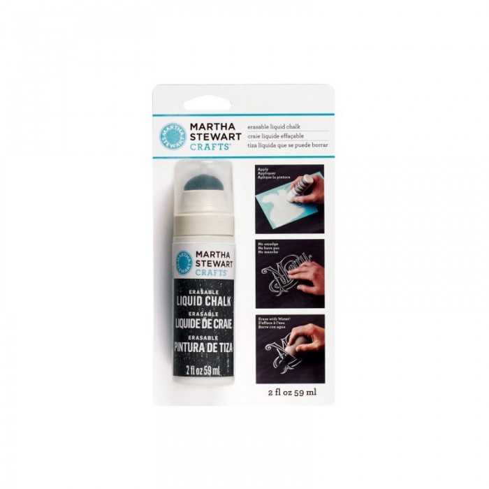 Tiza LÍQUIDA BORRABLE de la prestigiosa marca Martha Stewart en botes de 59ml. Es más resistente y de larga duración que la tiza común. Se aplica como una pintura, no mancha y se lava con una esponja húmedaa sin dejar marcas. MODO DE EMPLEO: Para tenenr mejores resultados utiliza los stencils y serigrafias de Martha Stewart y su pintura de PIZARRA multisuperficies. Fabricado en U.S.A.