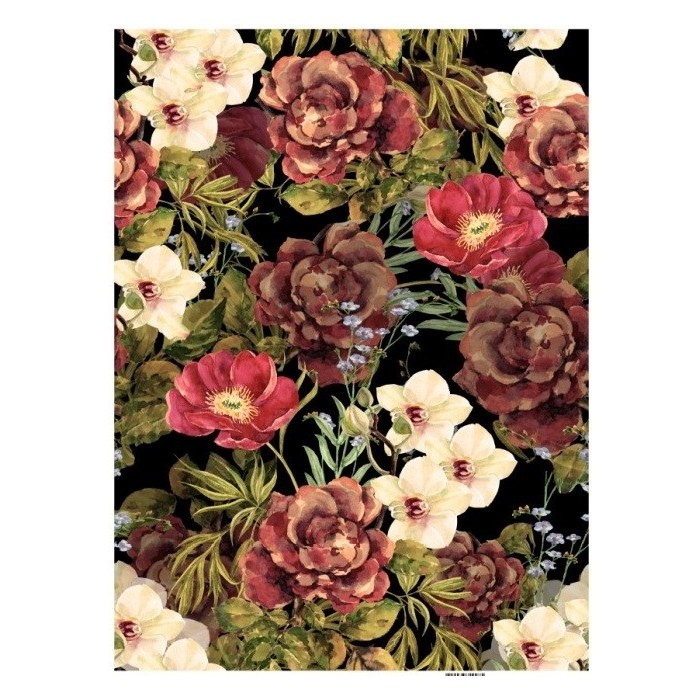 PAPEL ARROZ A3 742 COLLAGE FLORES FONDO NEGRO