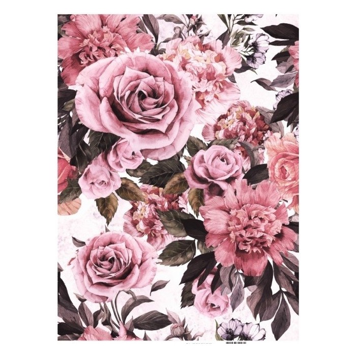 PAPEL ARROZ A3 741 COLLAGE FLORES ROSAS ANTIGUAS