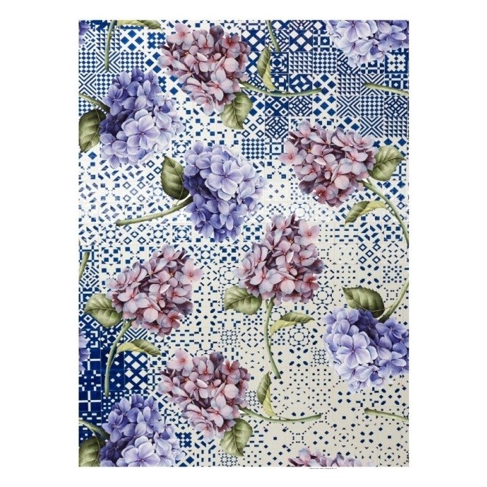 PAPEL ARROZ A3 740 ORTENSIAS SOBRE AZULEJOS