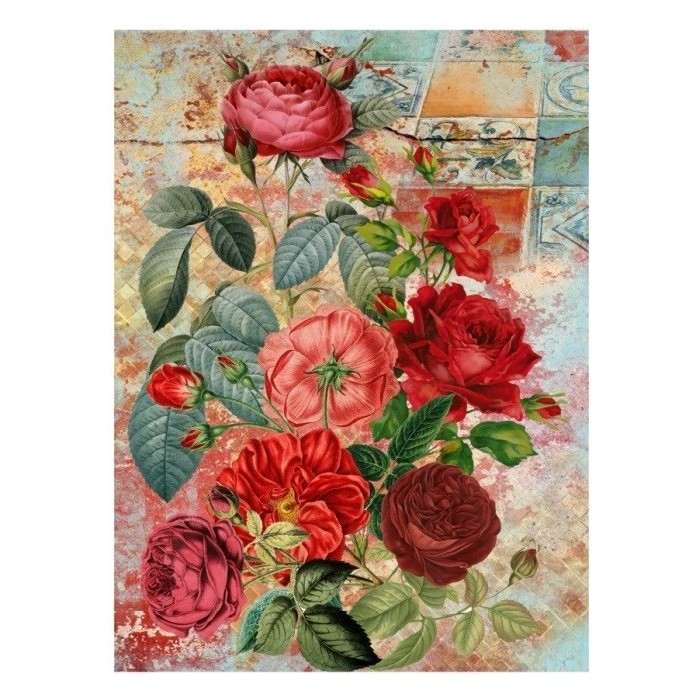 PAPEL ARROZ A3 737 COLLAGE ROSAS ROJAS S/AZULEJOS