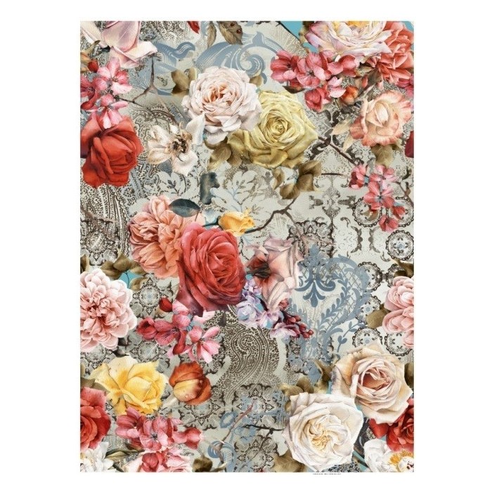 PAPEL ARROZ A3 734 COLLAGE ROSAS Y DAMASCOS